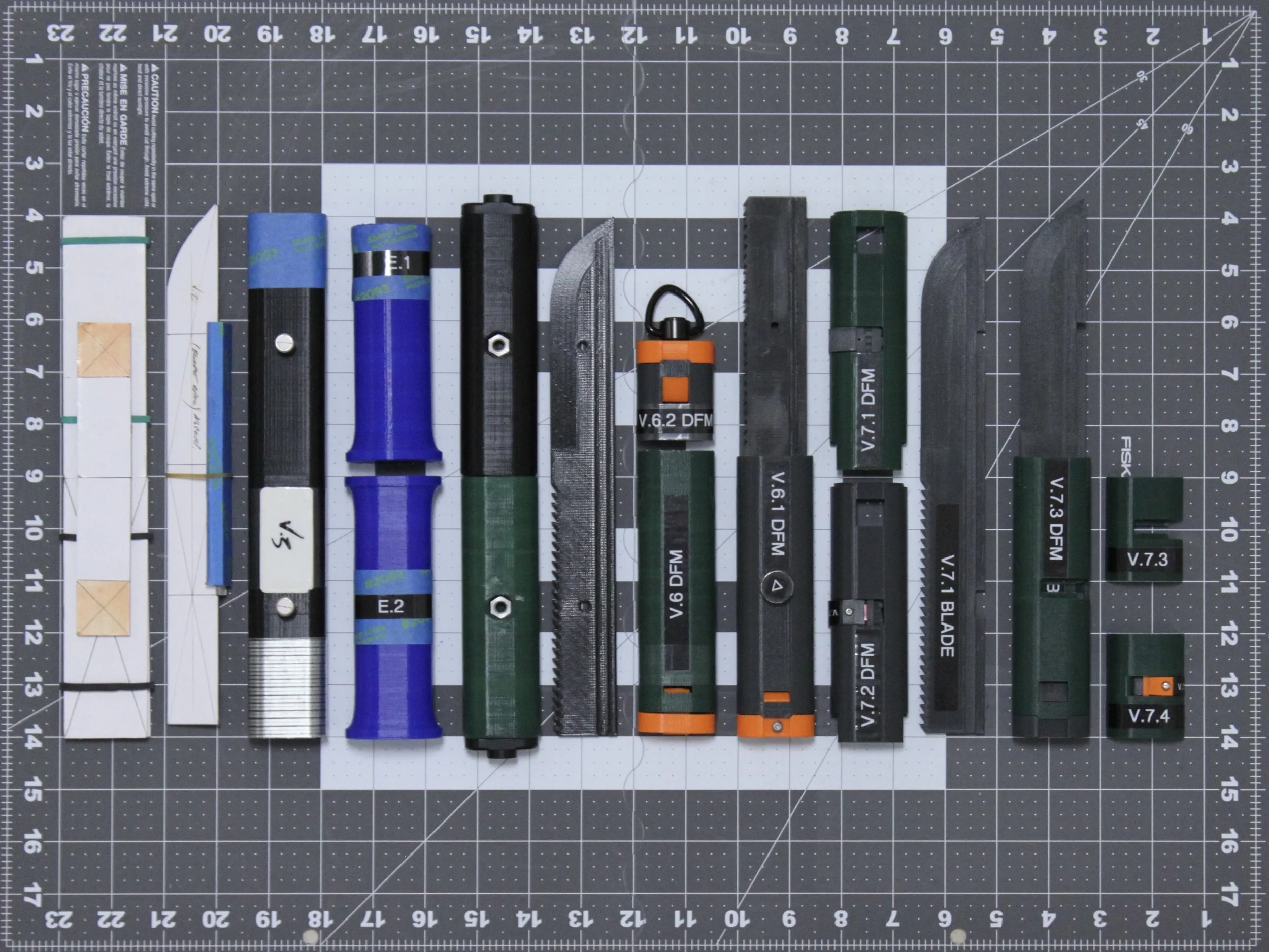 CMF (Color Material Finish) options for the DualBlade — [LEFT] Standard colorway inspired the natural environment and foliage, [RIGHT] High Visibility colorway for emergency or hunting use.